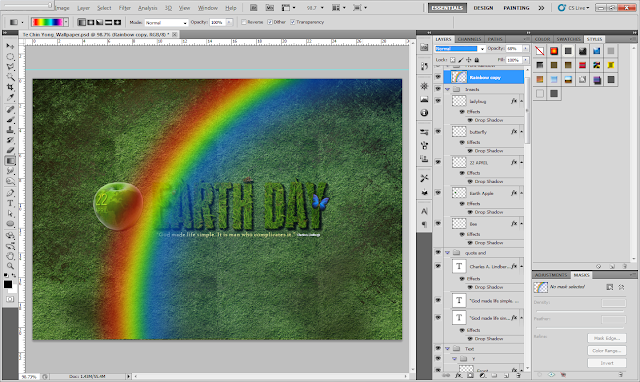 Step 35: Duplicate the rainbow and move the layer below the"EARTH DAY" layer to have front and back rainbow through the TEXT.